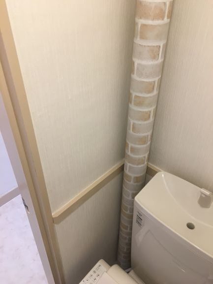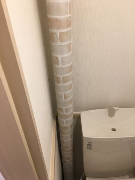 そのお部屋の雰囲気に合っていたので、レンガ模様のシールを配管に貼ってみました。